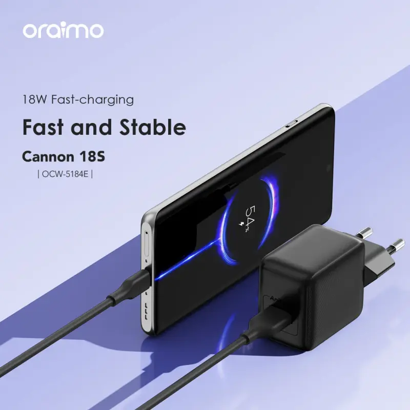 The Oraimo Cannon 18S 18W Charger is designed to offer ultra-fast, efficient charging for your devices. Featuring AniFast™ Fast Charging technology, this charger delivers powerful 18W charging speeds, ensuring your devices power up quickly and efficiently. Whether you’re at home, at the office, or on the go, this charger is the perfect solution to keep you connected without the wait.
